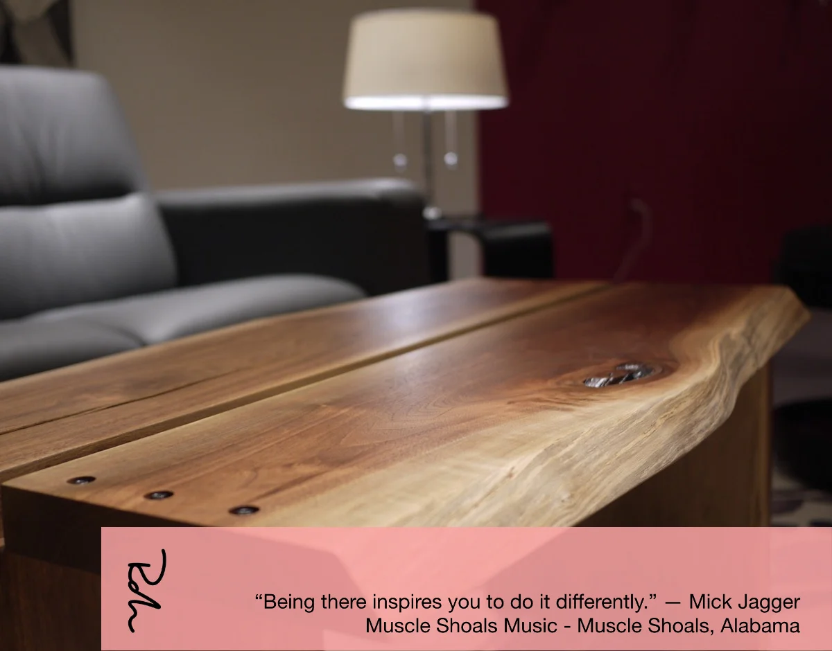 Robin Wade Furniture is a celebration of nature—a melding of a forward thinking commitment to the environment and a quiet, harmonious design aesthetic. From his "slow studio" in North Alabama, award-winning wood artist Robin Wade designs and crafts one-of-a-kind handmade furniture. Years before a piece is ready to enter a client's home or a gallery, the process begins—naturally—with the tree. Sustainably harvested, each specimen of hardwood is flitch sawn into natural-edge wood slabs, debarked by hand with a draw knife, and stacked to dry, usually for years, before the final cure in the kiln. From here, Wade and his team use both hand and power tools to bring Wade's vision to life, and then finish each piece with a hand-rubbed oil blend. Each organic furniture creation by Robin Wade Furniture balances the raw, natural beauty of environmentally, locally sourced hardwoods with minimally invasive, clean lines—a juxtaposition Wade calls both rustic and modern. “I haven’t yet found a better artist than nature,” he says.
