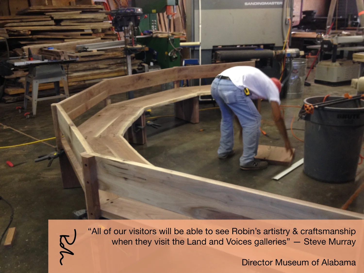 Robin Wade Furniture is a celebration of nature—a melding of a forward thinking commitment to the environment and a quiet, harmonious design aesthetic. From his "slow studio" in North Alabama, award-winning wood artist Robin Wade designs and crafts one-of-a-kind handmade furniture. Years before a piece is ready to enter a client's home or a gallery, the process begins—naturally—with the tree. Sustainably harvested, each specimen of hardwood is flitch sawn into natural-edge wood slabs, debarked by hand with a draw knife, and stacked to dry, usually for years, before the final cure in the kiln. From here, Wade and his team use both hand and power tools to bring Wade's vision to life, and then finish each piece with a hand-rubbed oil blend. Each organic furniture creation by Robin Wade Furniture balances the raw, natural beauty of environmentally, locally sourced hardwoods with minimally invasive, clean lines—a juxtaposition Wade calls both rustic and modern. “I haven’t yet found a better artist than nature,” he says.