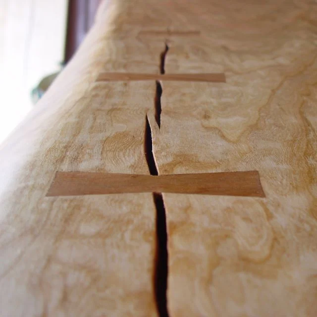 Many manufacturers stain their furnishings a color they call “cherry” and, unfortunately, hide this wood’s truly amazing nature. Wade prefers to hand finish, usually with a tung oil and linseed oil or varnish mix, the pieces he crafts from this striking hardwood—including a cherry bench, cherry table, modern cherry dining table.