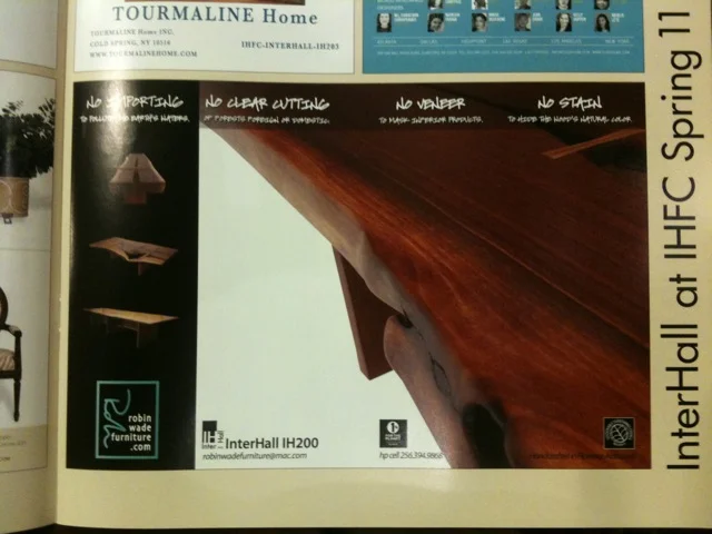 What a great show, and what fun we had during our (almost) two weeks at Spring Market this year (2011). The location couldn't be beat. And our advertising worked. In addition to product placements of 9 new tables in the preview books, we ran this ad in the Market Resource Guide as well as the InterHall book. Folks saw the ads, and came looking for us! Great fun to see our marketing efforts working.