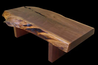 Wade believes in presenting walnut furniture with thick wood slabs in their natural state. “The change in color between the light sap wood and dark heart wood is really striking,” he says. “And its real.” Wade’s philosophy of keeping lumber as close to its natural state as possible helps him create very unique, organic pieces. Each of his black walnut furniture pieces—a walnut dining table, walnut bench, walnut console table—celebrates this wood’s wonderful natural character.